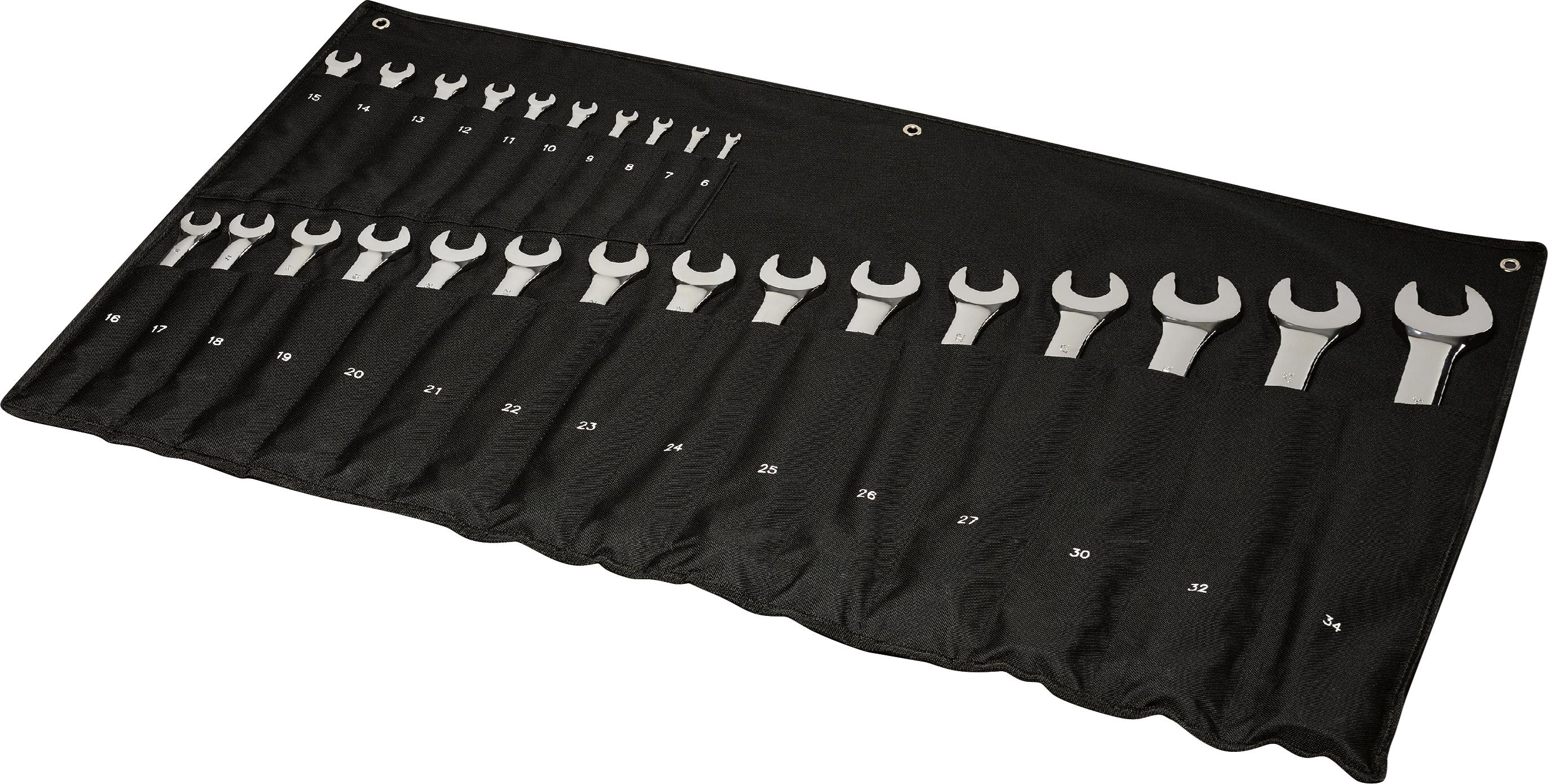 • 25 x surface drive combination spanners: 6, 7, 8, 9, 10, 11, 12, 13, 14, 15, 16, 17, 18, 19, 20, 21, 22, 23, 24, 25, 26, 27, 30, 32 and 34mm