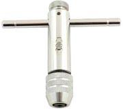 Ratcheting tap wrench with forward, reverse, and locking action.