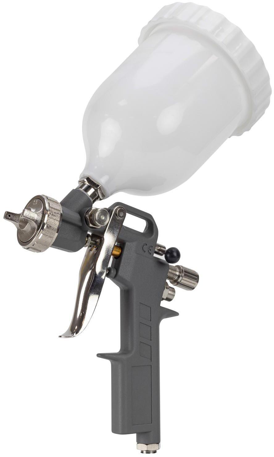 The SIP Cobalt Gravity Feed Spray Gun is a stainless steel gravity-fed spray gun. It features a fully adjustable fluid output and fan control for total control and the most efficient paint usage possible. It has a 1.5mm nozzle and 400cc paint capacity.