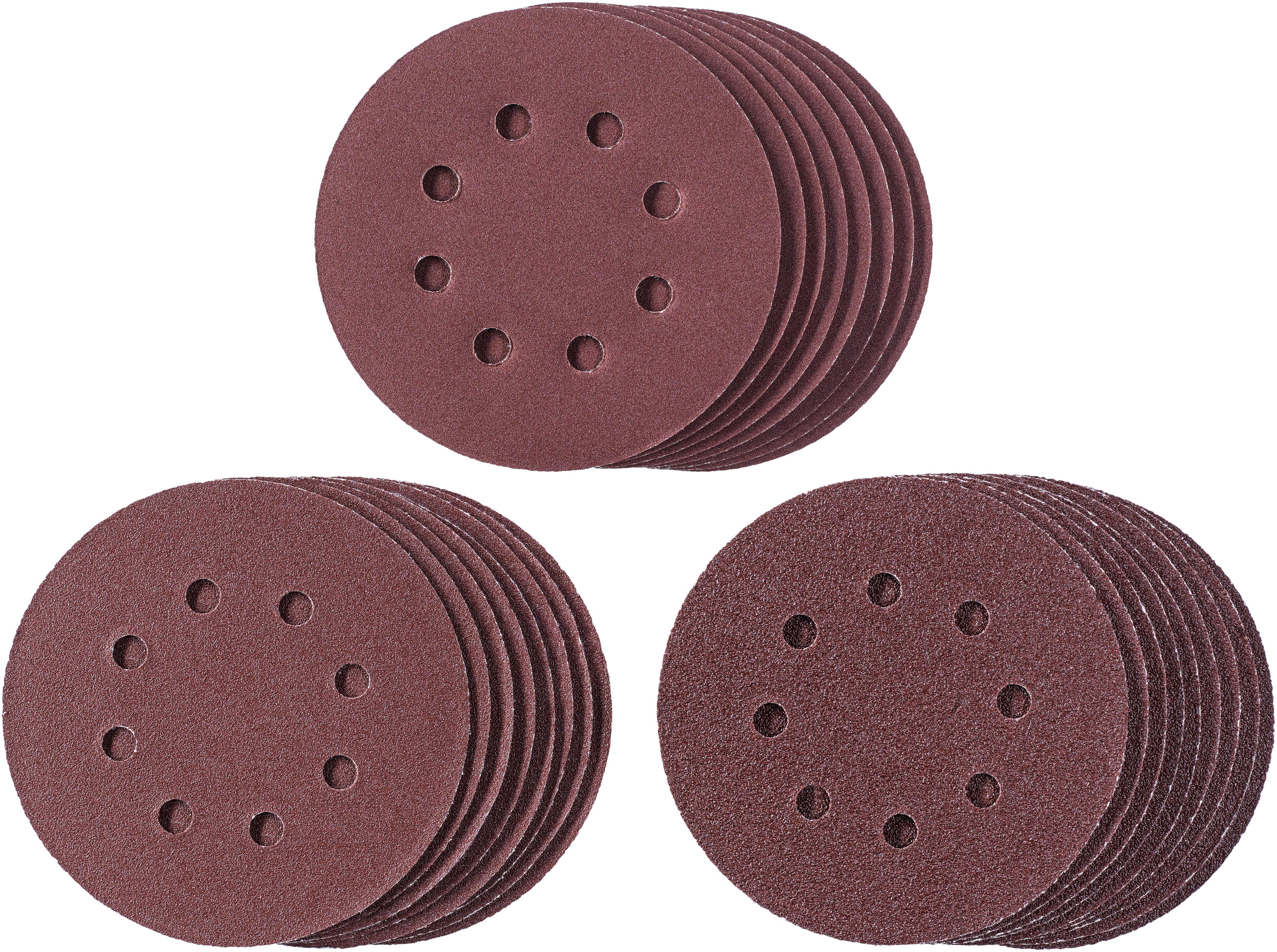 With the Original Einhell 25-piece abrasive paper set, large areas of wood or metal can be smoothed quickly, precisely and cleanly. Thanks to the 8 perforations, the discs are suitable for use with an extraction system. The Quick-Stick system enables the abrasive discs to be changed without tools thanks to the strong hook-and-loop backing. The different grit sizes mean you will always have the right abrasive for every project. The sanding discs are suitable for all commercially available rotary sanders with a diameter of 125 mm. All abrasive discs in this set have a diameter of 125 mm The set contains 25 discs with three different grit sizes: 9x P60, 8x P120 and 8x P180.