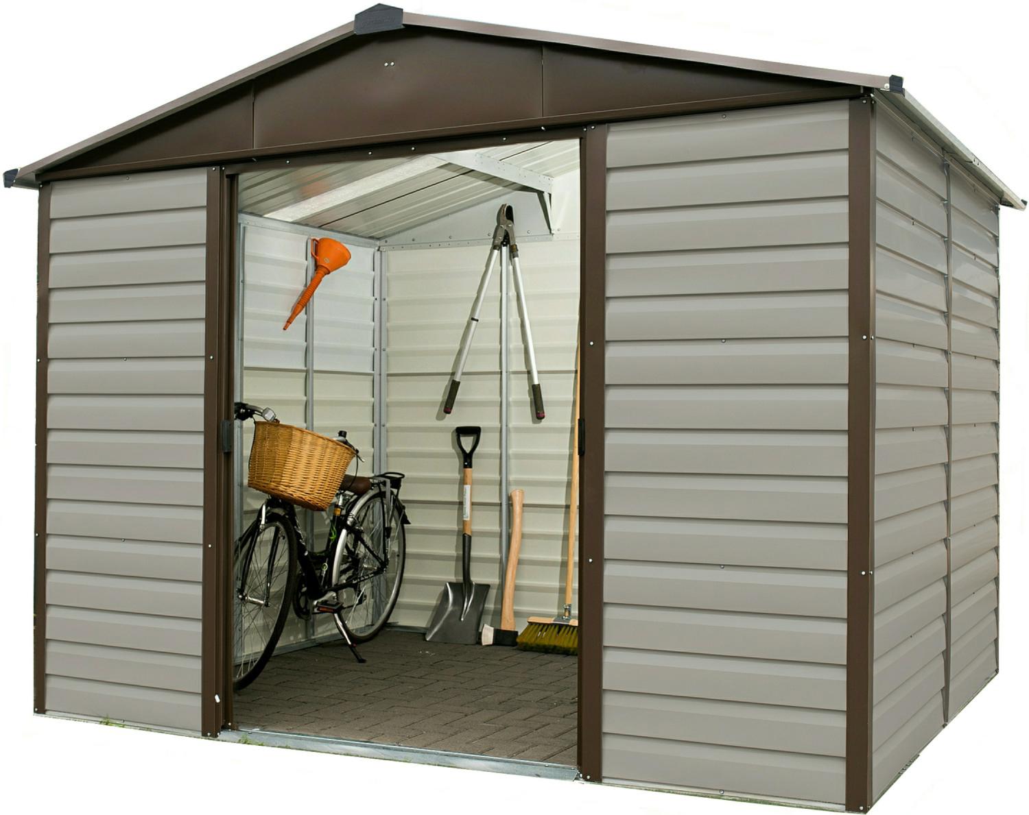 Featuring extra tall walls and gables, this deluxe 8x6ft Shiplap metal shed can be used as a workshop or for storing away items such as bicycles and garden equipment.  Two translucent roof panels and white inside walls create a brighter more useable interior. The premium hot dipped galvanised steel construction guarantees years of maintenance free use. Features and Benefits: Extra headroom for comfortable access and use; 15 year UK manufacturer's anti-rust warranty; Anchor fixings included; Roof gutters collect rainwater and help maintain cleaner walls; Lockable double sliding doors, 2x thicker than competing products, for extra strength and security; Ventilated along roof peak and eaves; Stainless steel screws.