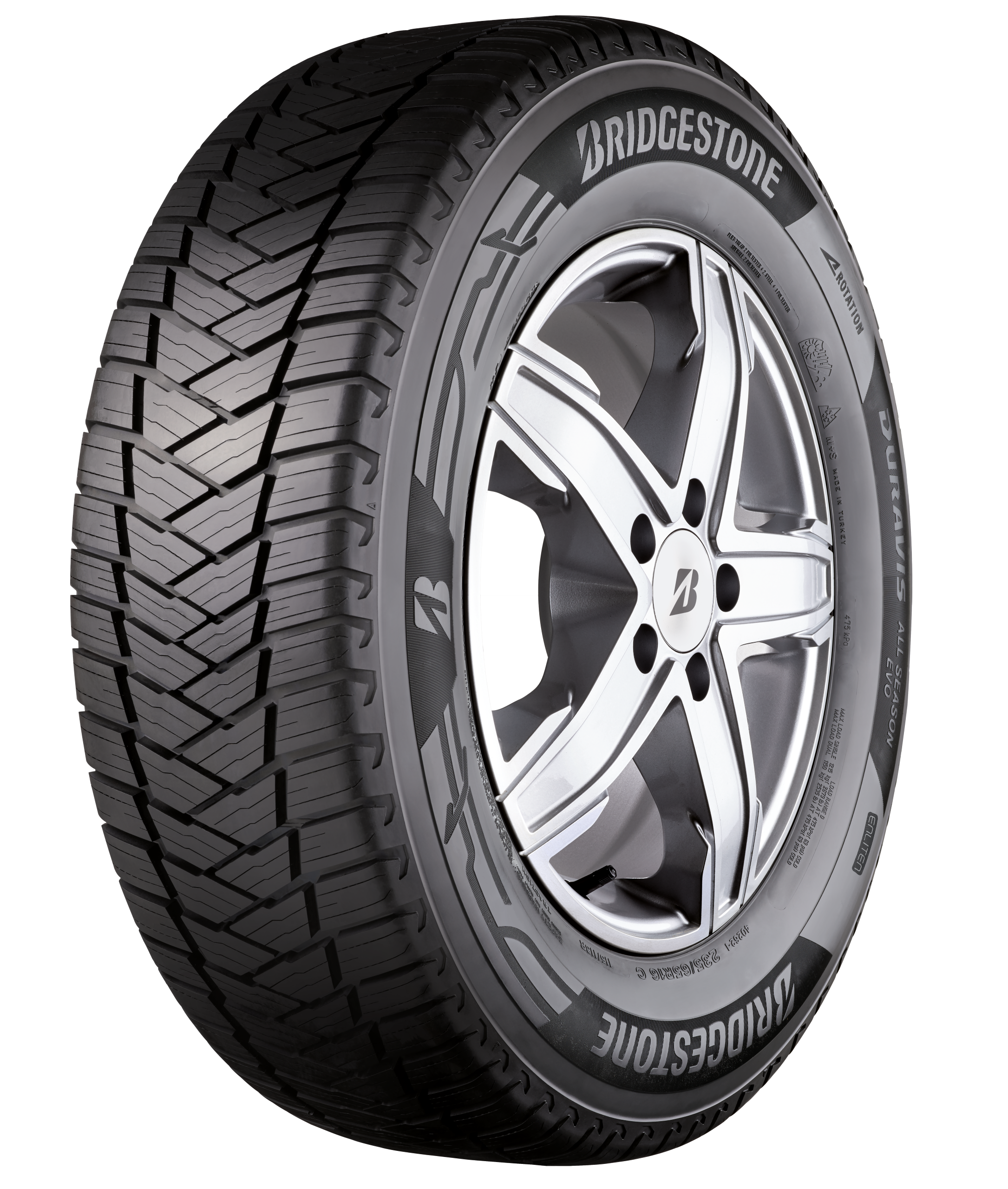 Unlock the potential of your fleet with Bridgestone Duravis All Season EVO with ENLITEN technology. This new tyre isn’t just about performance; it’s about giving you and your drivers the confidence to take on any job, come rain, occasional snow or sunny weather. Rely on the same tyres year-round to maximise your uptime, cost-effectiveness and efficiency, because your operational success is what really matters. Improved mileage: +15% improvement on mileage vs predecessor Best-in-class wet grip and winter-ready: Wet Grip Index EU label grade A and 3PMSF marking Increased fuel / energy efficiency: 15% rolling resistance vs predecessor EV Ready: Tyre designed to meet the specific requirements of electric vehicles.